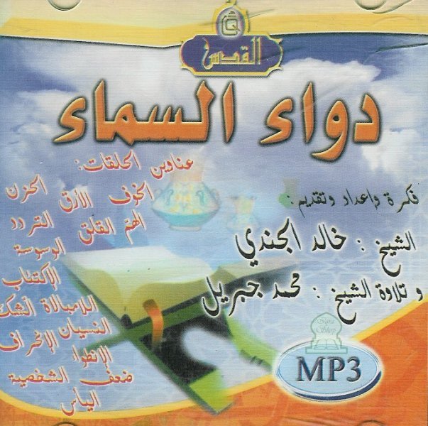 "Le remède du Ciel" par Cheikh Khaled Al-Joundi, récitation du Cheikh Mohamed Jebril. Version MP3 d'une série de 4 cassettes sur le sujet des maladies de du cœur et de l'âme et de ses maux et leur remède d'après le Coran. Parmi les problèmes traités : La peur, la tristesse, le stress, la waswassa, la faiblesse de la personnalité, l'oubli, la déviance, le doute, la négligence, l'anxiété, etc.