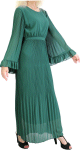 Robe longue fluide plissée avec manches évasées pour femme - Couleur vert foncé - REF. 30883 (29.90 €)