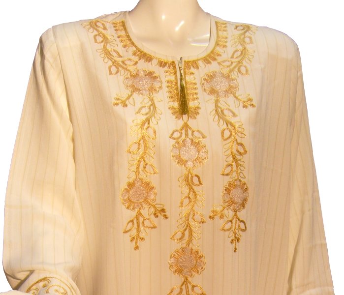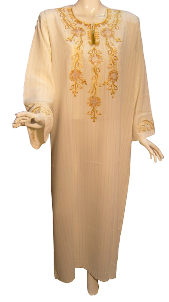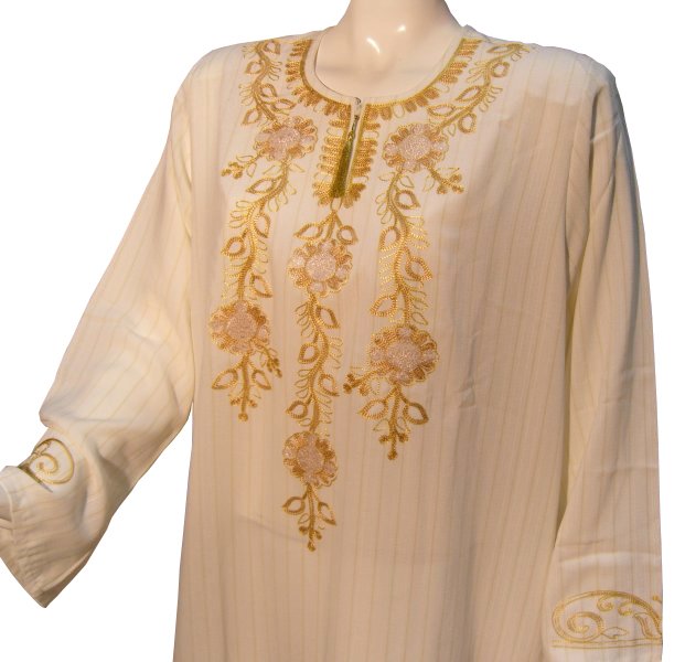 Robe Leyla de couleur blanc cassé avec broderie sur le devant et les manches.
