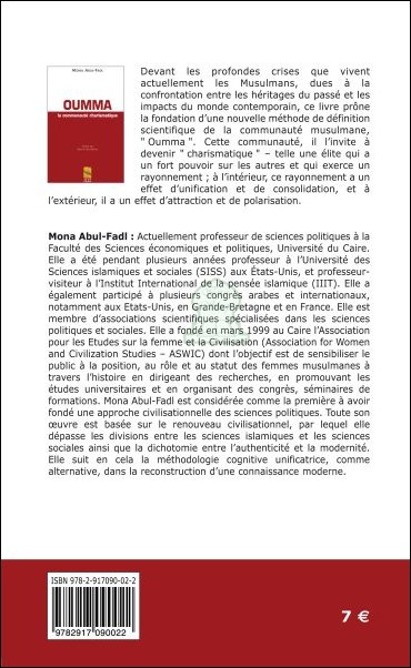 Devant les profondes crises que vivent actuellement les musulmans, dues à la confrontation entre les héritages du passé et les impacts du monde contemporain, ce livre prône la fondation d'une nouvelle méthode de définition scientifique de la communauté musulmane, "Oumma". Cette communauté, il l'invite à devenir "charismatique" -telle une élite qui a un fort pouvoir sur les autres et qui exerce un rayonnement; à l'intérieur, ce rayonnement a un effet d'unification et de consolidation, et à l'extérieur, il a un effet d'attraction et de polarisation.