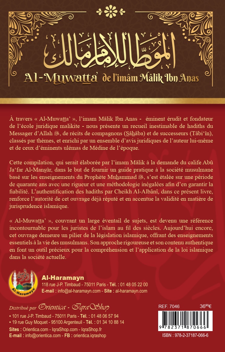 Al-Muwatta’ de l’imâm Mâlik Ibn Anas (Bilingue français-arabe) Al-Muwatta - الموطأ للإمام مالك - REF. 7046 (36.90 €)