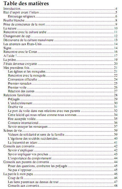 Ce livre est l'occasion aussi de remettre en question mes relations avec mes proches et de réfléchir au comportement que devrait avoir un nouveau musulman pour annoncer sa conversion.