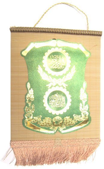 Fanion tisse en bois : Avec inscription de versets coraniques (Dore)