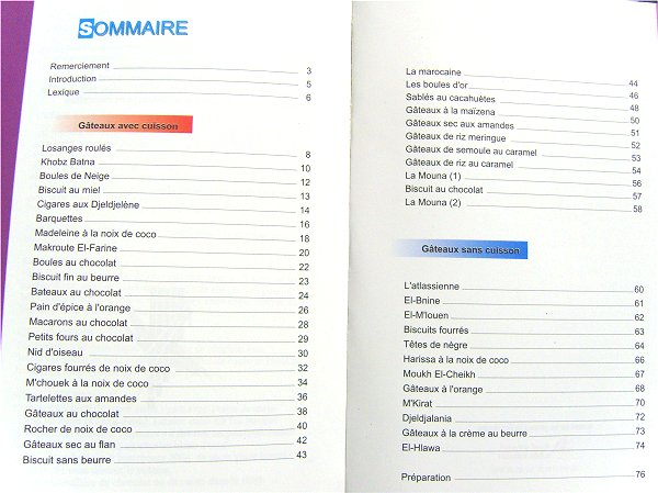 Un livre de pâtisserie présenté par Madame Kheira Bacha contenant différentes recettes faciles à préparer avec des photos illustrées.