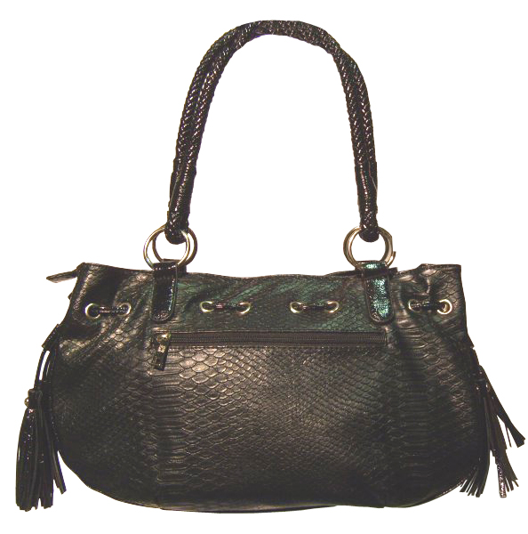 Sac à main noir pour femmes imitation crocodile. Fermé par zip. Pochettes intérieures.