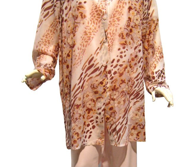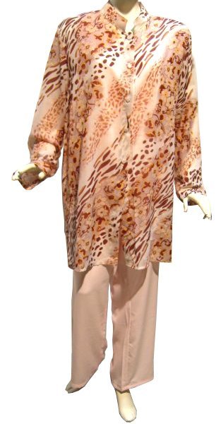 Ensemble Ghania trois pièces (chemisier, sous chemisier et pantalon) couleur blanc avec motifs marron Vetement & Accessoire