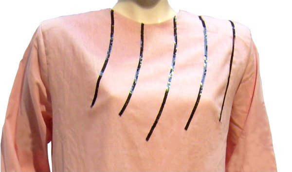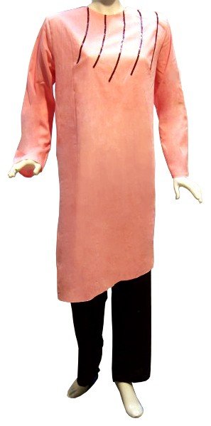 Ensemble Hafsa en lin couleur rose. Tunique rose et pantalon noir.