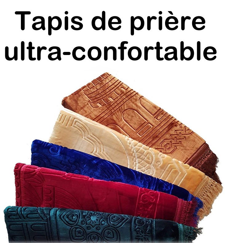 Lot de deux grands tapis de luxe (80 x 120 cm) épais avec dessous antidérapant. Très doux au toucher avec motif Mihrab indiquant la direction de la qibla - La Mecque. Plusieurs couleurs sont disponibles. Chaque tapis pèse plus de 1kg.