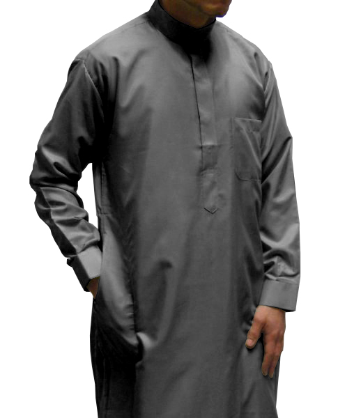Qamis léger et agréable à mettre de couleur gris clair avec 3 poches.