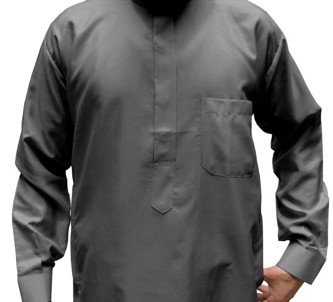 Qamis Al-Haramayn (Qamis manches longues avec col non brode) - Gris fonce