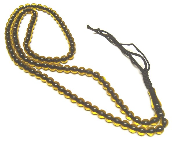Chapelet (Sebha) en bois naturel couleur jaune moutarde avec 99 grains