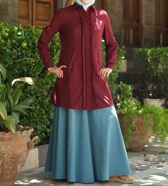 Tunique à volant (Vetement tendance femme voilée) - Couleur brique - REF. 32765 (23.00 €) - En Promotion à 19.90 €