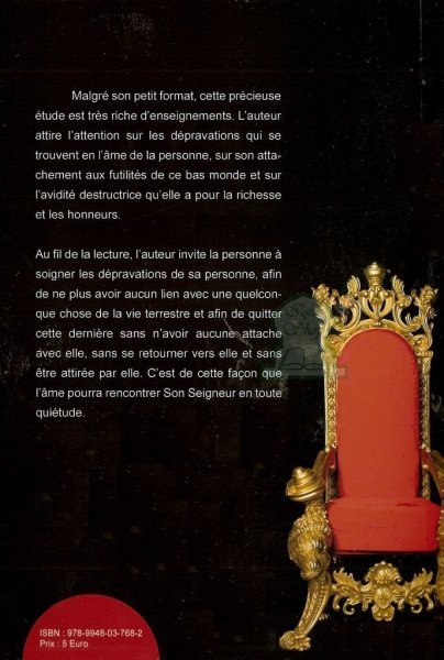 Malgré son petit format, cette précieuse étude est très riche d'enseignements. L'auteur attire l'attention sur les dépravations qui se trouvent en l'âme de la personne, sur son attachement aux futilités de ce bas monde et sur l'avidité destructrice qu'elle a pour la richesse et les honneurs.