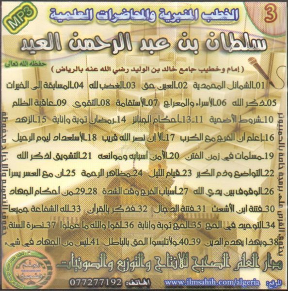 Cours de cheikh Sultan Al 'Id (N° 3) - الخطب المنبرية والمحاضرات العلمية للشيخ سلطان بن عبد الرحمن العيد CD MP3