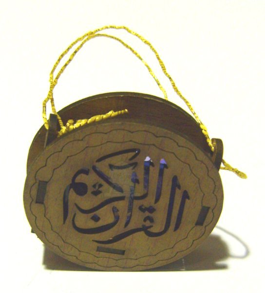 Avec l'inscription "Al-Quran Al-Karîm" (Le Saint Coran).