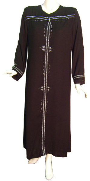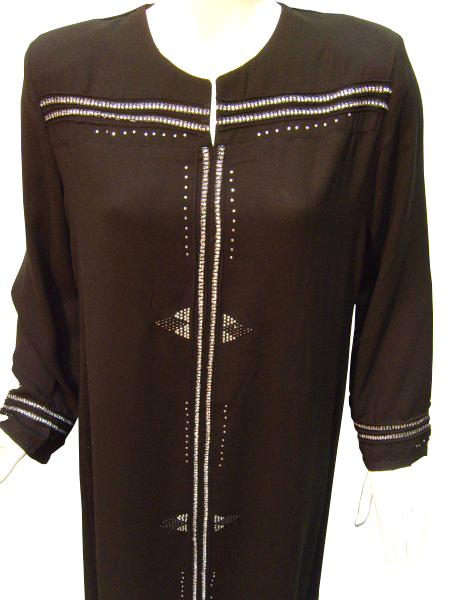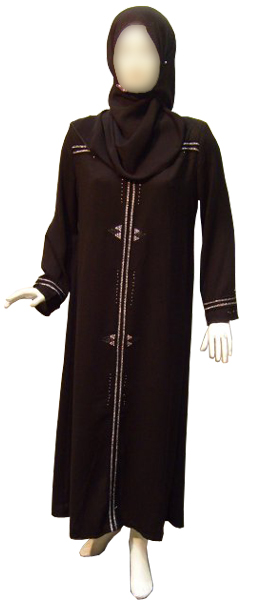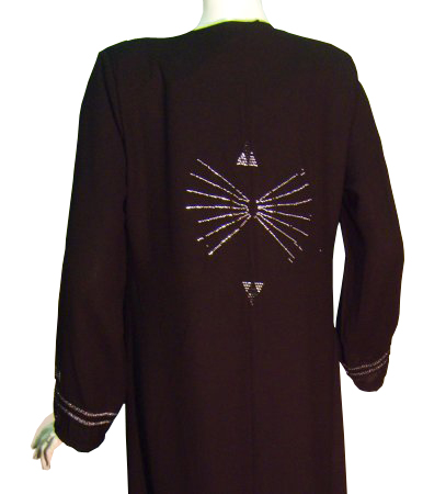 Abaya noire brodée argent "Kalthoum" avec son foulard (echarpe couleur noire unie).