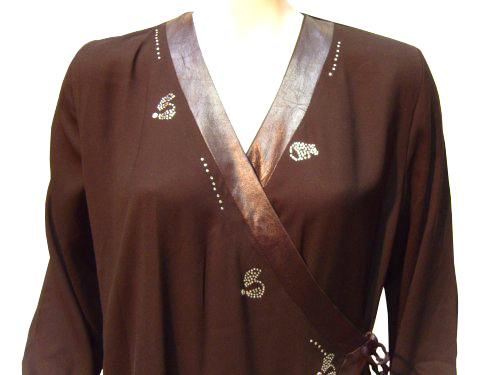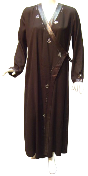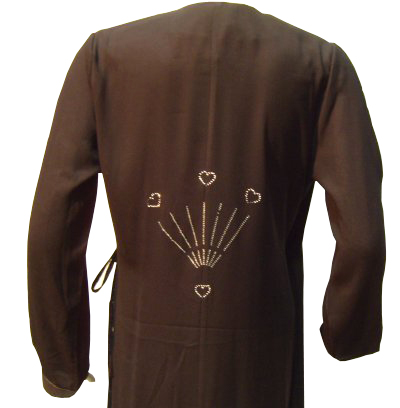 Abaya noire ouverte Khadija avec décorations brillantes sur le devant et le dos. Fabrication syrienne.