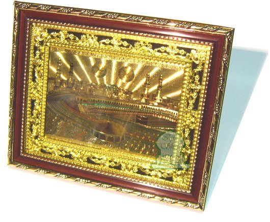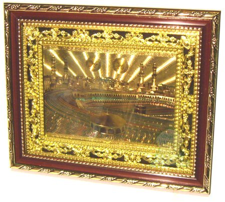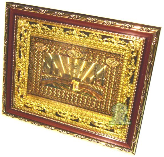 Tableau décoratif doré "Mosquée de La Mecque". Fourni dans une boite cadeau de couleur bordeaux.