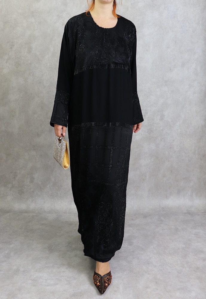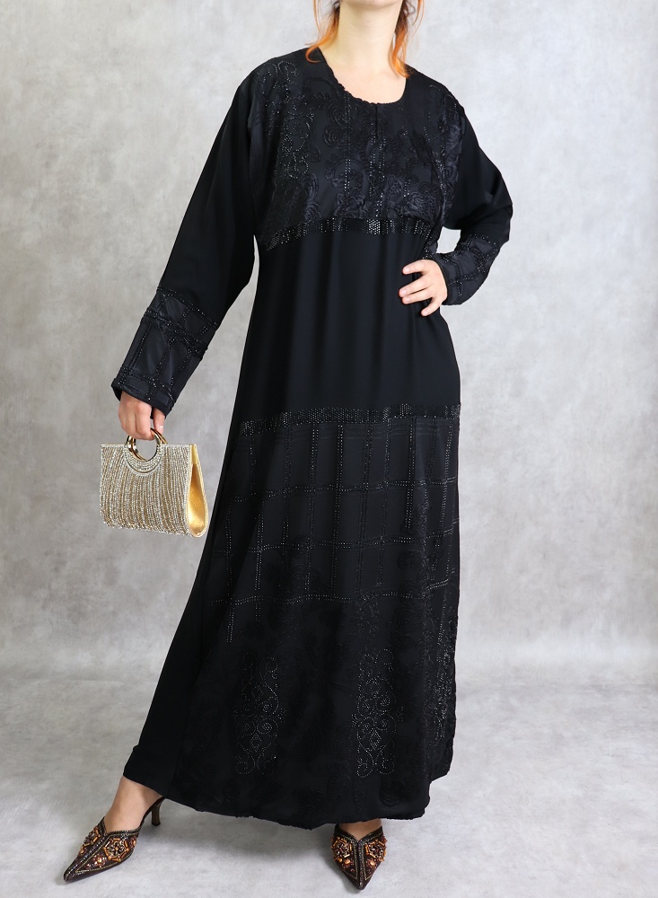 Abaya des Emirats - Robe Noire ornée de broderie et de strass - REF. 31074 (39.00 €)