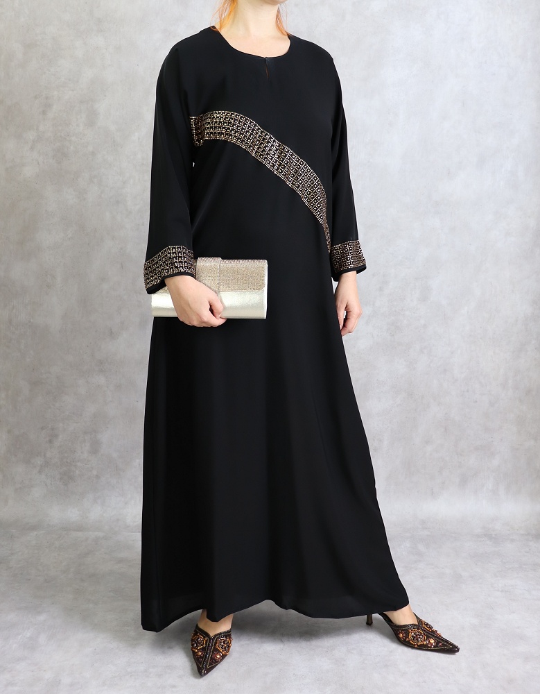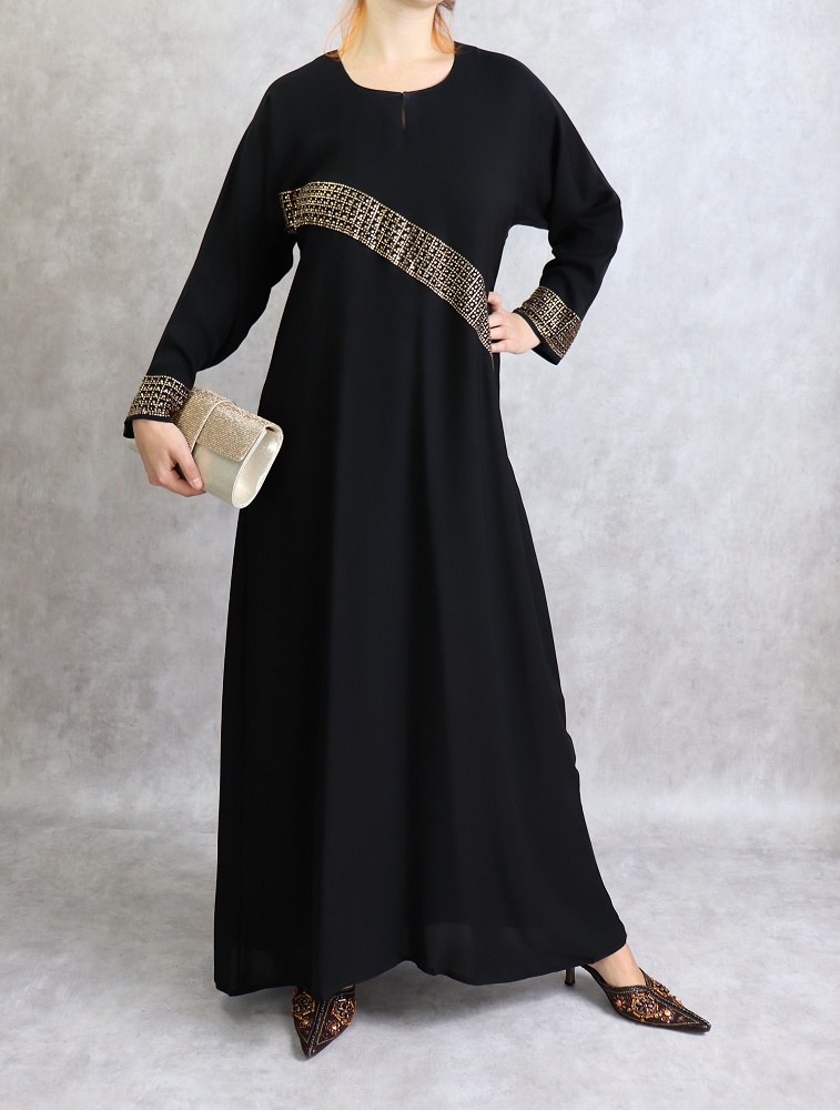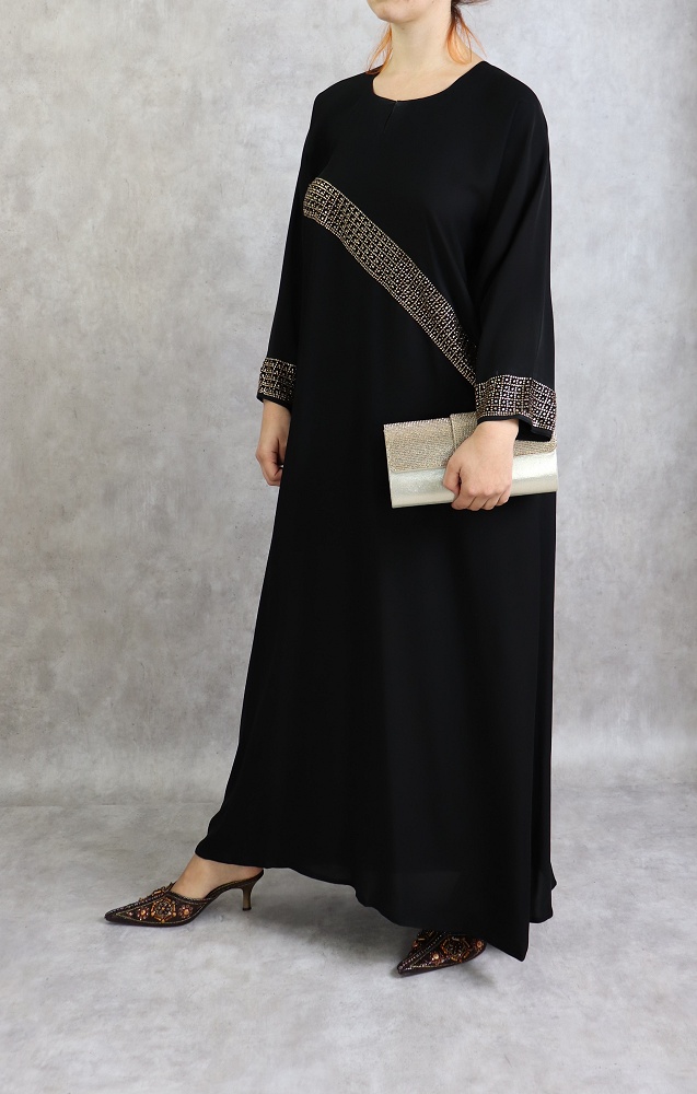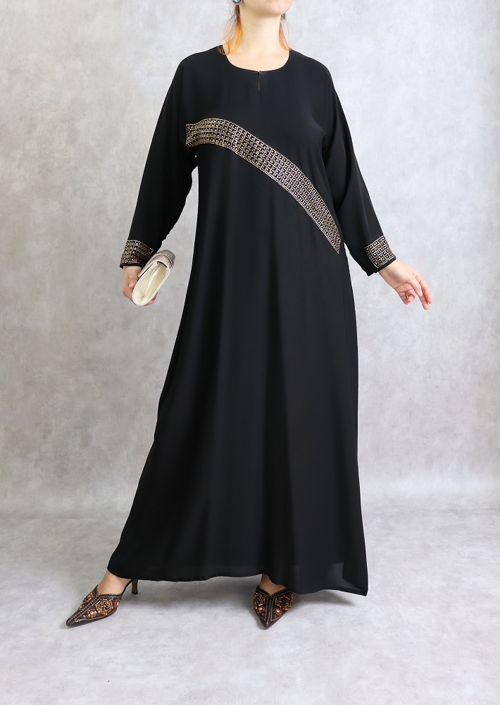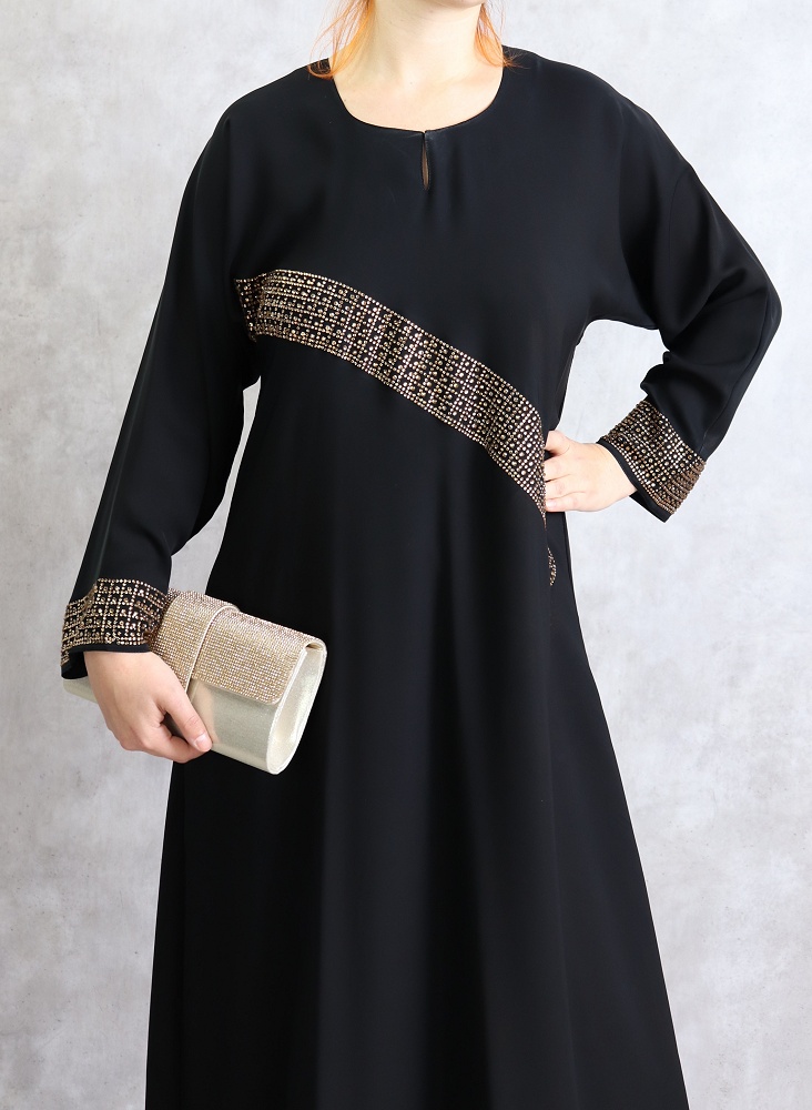 Abaya des Emirats - Robe Noire ornée de broderie et de strass - REF. 31074 (39.00 €)