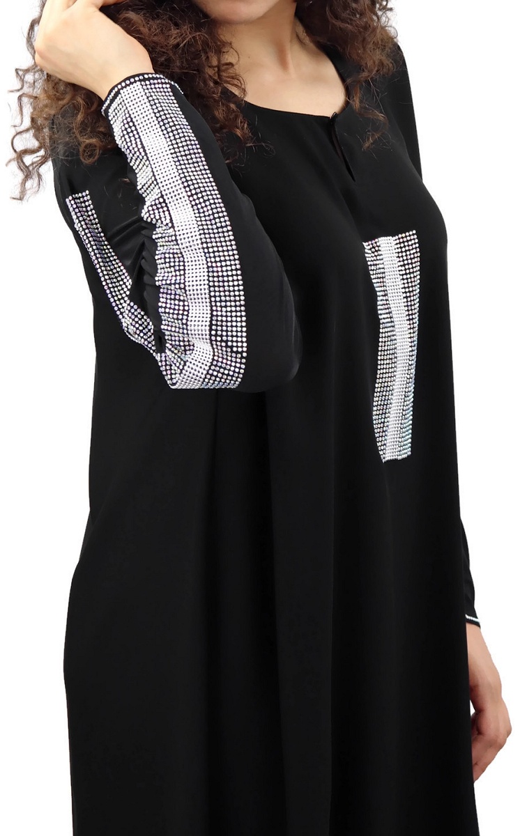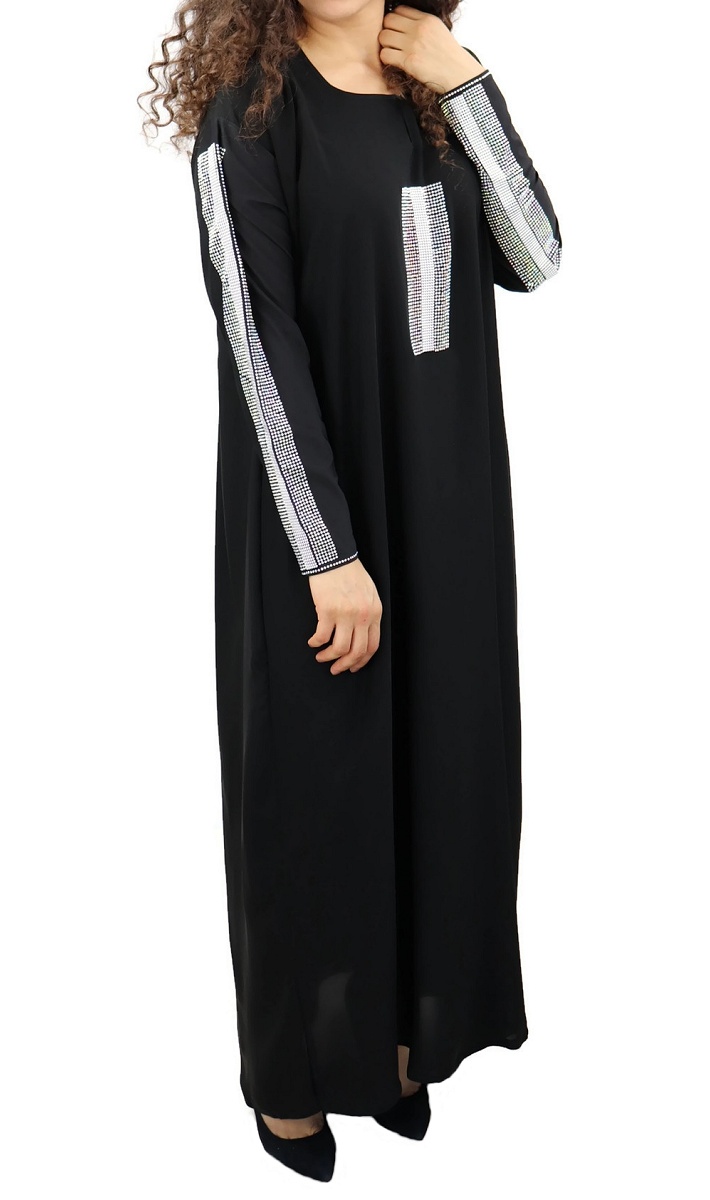 Robe de soirée Abaya Dubaï de qualité avec strass et diamant noirs et blancs - Couleur noir - REF. 38172 (45.00 €)