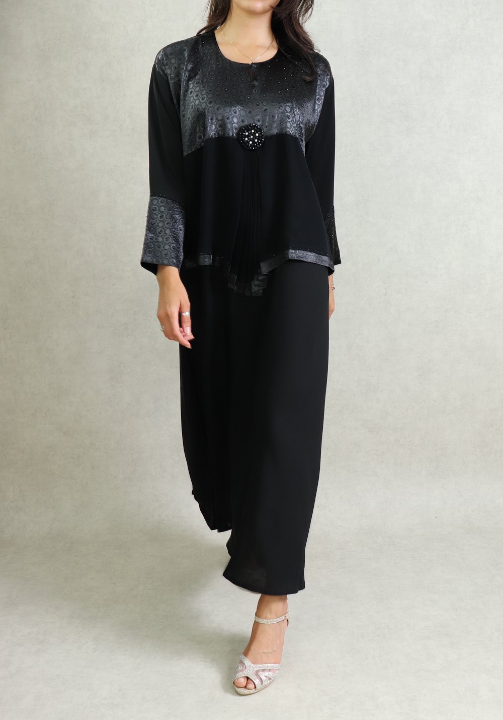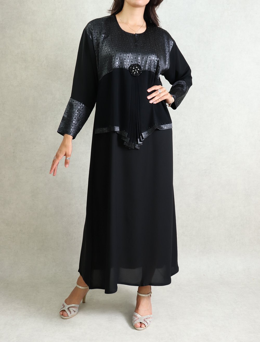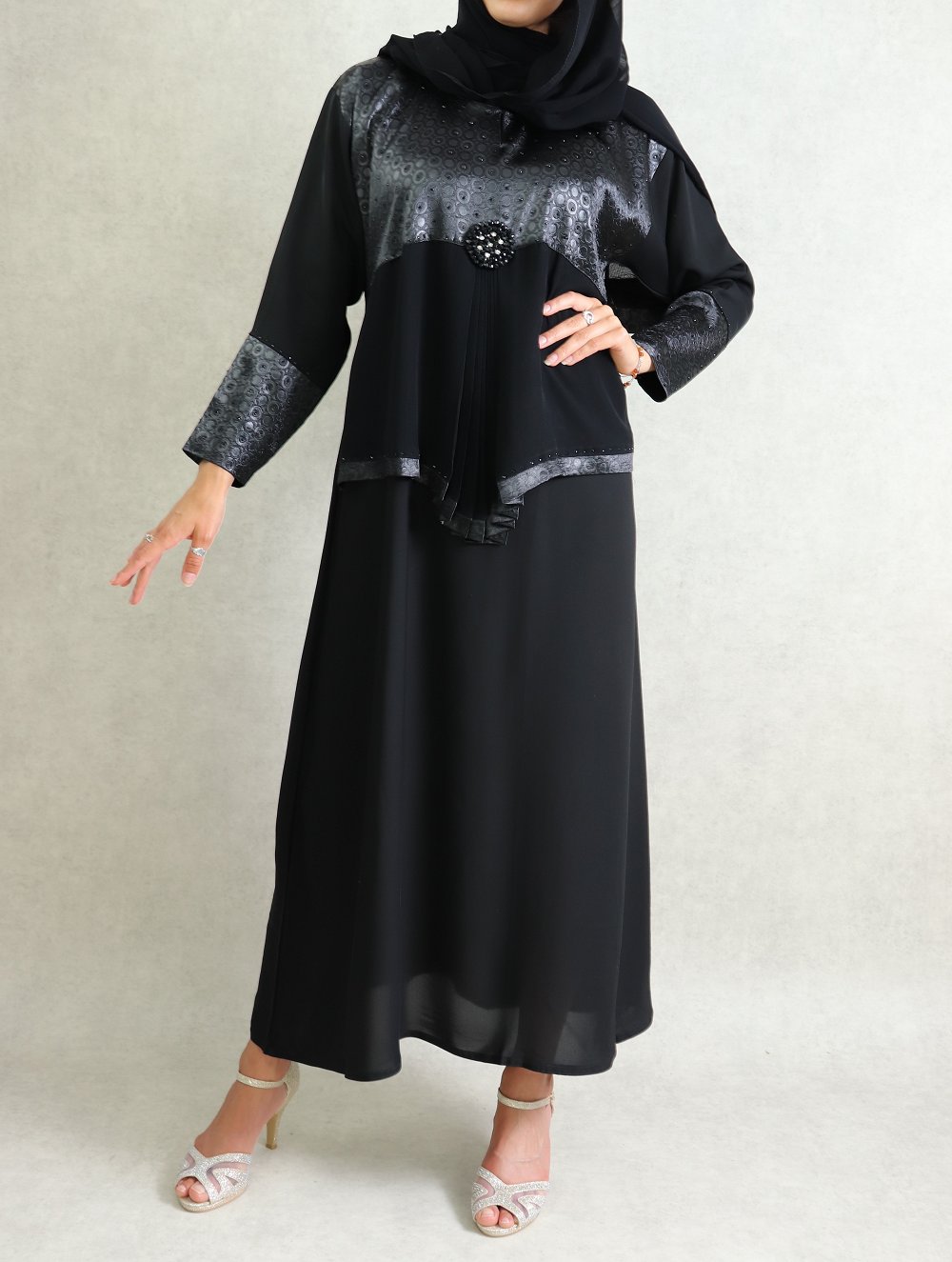 Robe longue (Abaya) noire avec strass et diamants noirs et son écharpe assortie - REF. 25278 (40.00 €)