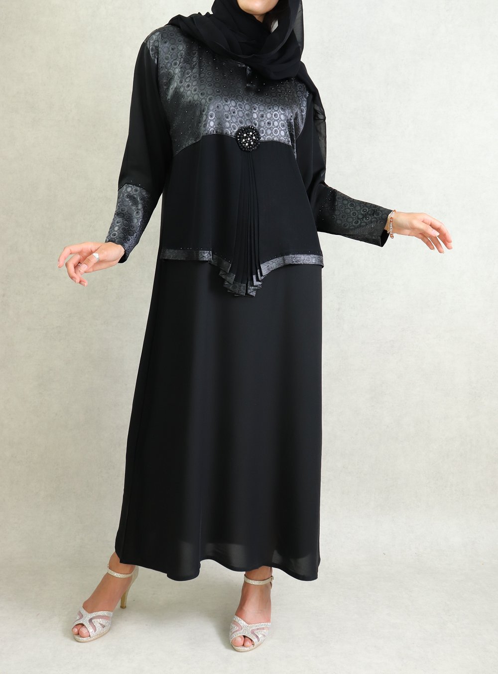Robe de soirée Abaya Dubaï de qualité avec strass et diamant noirs et blancs - Couleur noir - REF. 38172 (45.00 €)