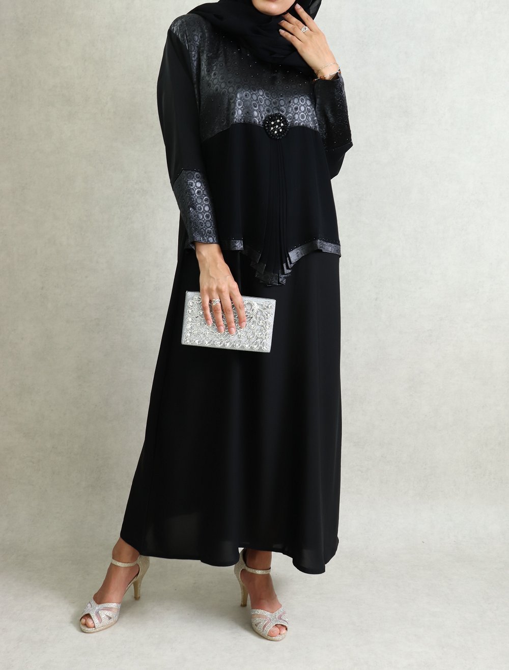 Abaya noire "Dubai" décorée de strass noires avec foulard assorti - REF. 32573 (45.00 €)