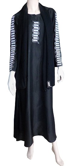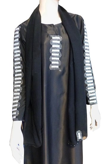 Robe longue (Abaya) noire avec strass et diamants noirs et son écharpe assortie - REF. 25278 (40.00 €)
