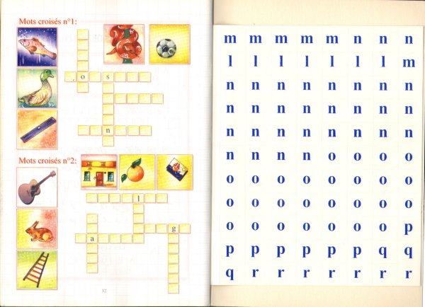 Livre d'apprentissage de la lecture et de l'écriture de l'alphabet français. Avec autocollants pour faire les activés (remplir les cases, voir photos).