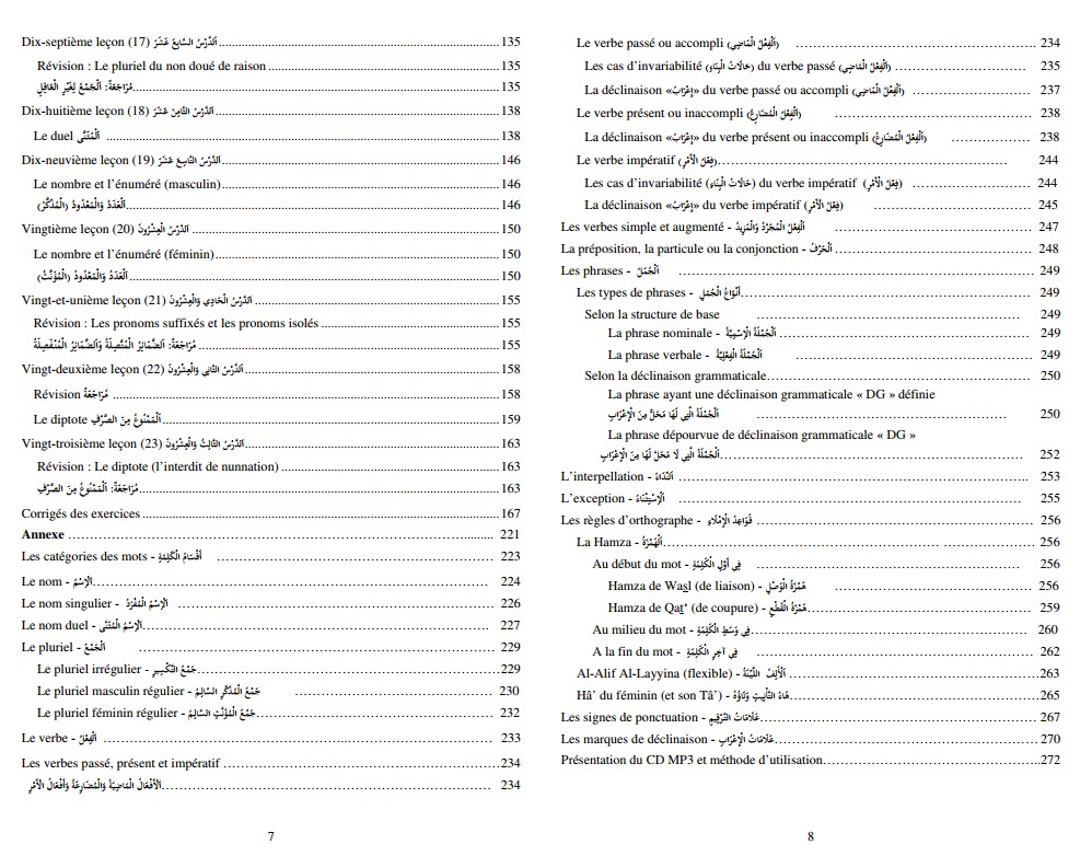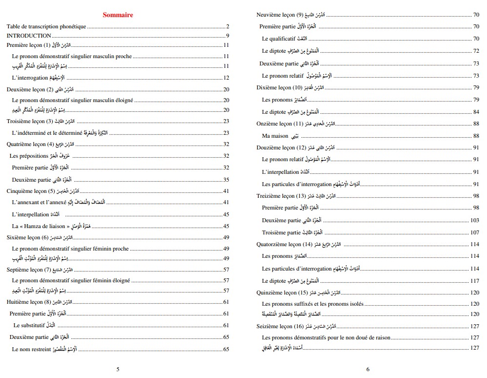 Cette méthode - qui s’adresse à vous, débutants connaissant déjà l’alphabet arabe - participe à l’acquisition d’une bonne maîtrise de la langue,tout en développant conjointement vos capacités de raisonnement, de concentration et de précision,vous permettant également de vous imprégner de nouvelles valeurs. Ce livre dispose en option d'un CD MP3 qui vous garanti un apprentissage autonome et optimal (les enregistrements du CD MP3 sont désormais disponibles en ligne, vous n'avez plus besoin d'utiliser le CD).