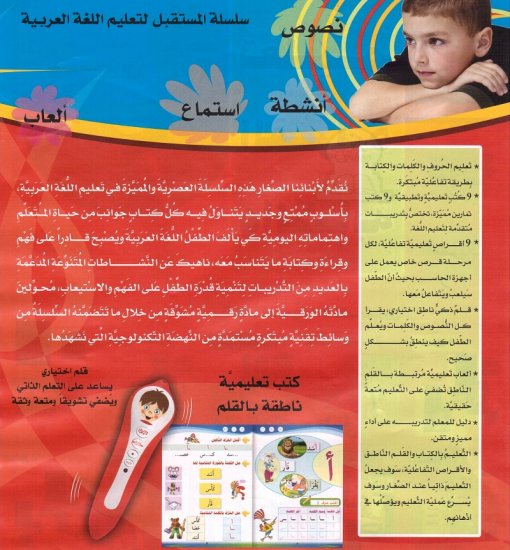 Collection Al-Mustaqbal / Future pour l'apprentissage de la langue arabe, une série de 9 niveaux de formation appuyés de livres pédagogiques, CDs interactifs, avec un stylo lecteur (optionnel) qui fonctionne pour tous les livres...
