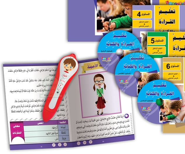 Collection Al-Mustaqbal / Future pour l'apprentissage de la langue arabe, une série de 9 niveaux de formation appuyés de livres pédagogiques, CDs interactifs, avec un stylo lecteur (optionnel) qui fonctionne pour tous les livres...