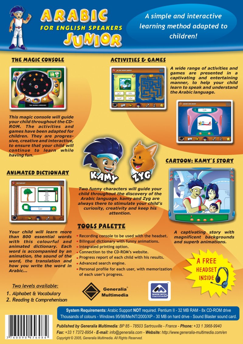 "Arabic for English speakers-Junior" is a new method of learning the Arabic language for kids. It's the most complete program of its kind, and the only one to offer an integrated module of writing and pronunciation.