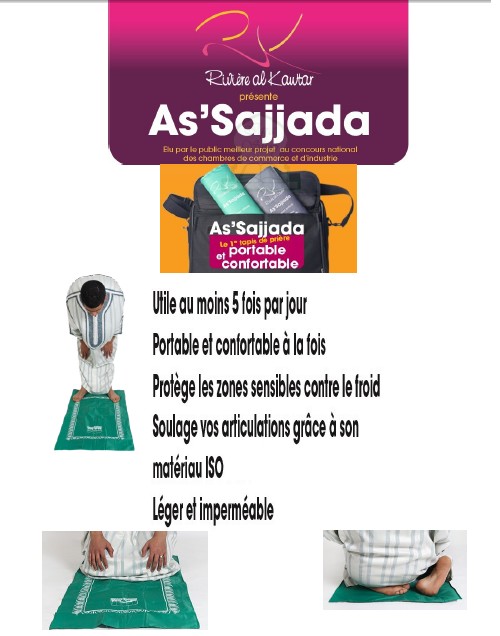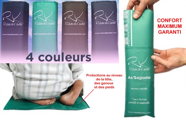 "As'Sajjada" est un tapis conçu en France spécialement pour la pratique de la prière. Il se caractérise d'abord par ses renforts (Matériau certifié ISO), situés à des endroits bien précis et une surface garnie et moelleuse, vous assurant une protection des zones en contact avec le sol (pied, genoux, front).