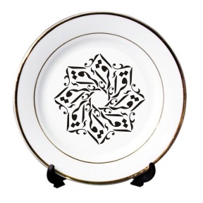 Assiette en porcelaine avec calligraphie artistique du mot arabe "Iqra" (Lis إقرأ) réalisée par un calligraphe professionnel. Cette assiette se mariera bien avec tous types de mobiliers. Le mot iqra est répété et imbriqué sous forme de cercle.