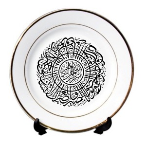Assiette en porcelaine avec bordure dorée et calligraphie de Sourate 109 Al-Kâfiroune - Les infidèles - REF. 18661 (14.90 €)