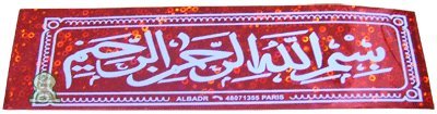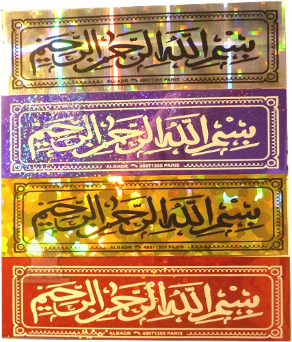 Autocollant : Au nom de Dieu Le Clément Le Très Miséricordieux (Bismillahirahmâni-rahimi). Existe en plusieurs couleurs (voir photo).