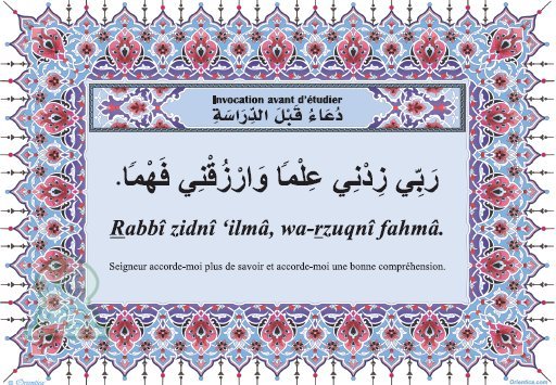 "Seigneur accorde-moi plus de savoir et accorde-moi une bonne compréhension."