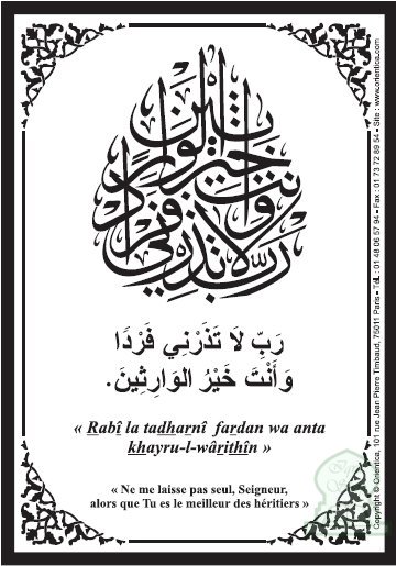 Autocollant : Invocation contre la solitude, le désespoir et pour demander des enfants (Sourate 21 - Verset 89) - REF. 9933 (0.50 €)