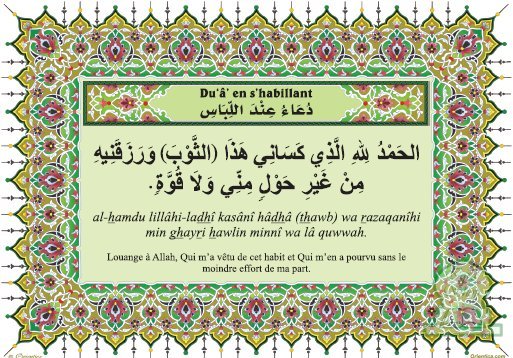"Louange à Allah, Qui m’a vêtu de cet habille et Qui m'en a pourvu sans le moindre effort de ma part."