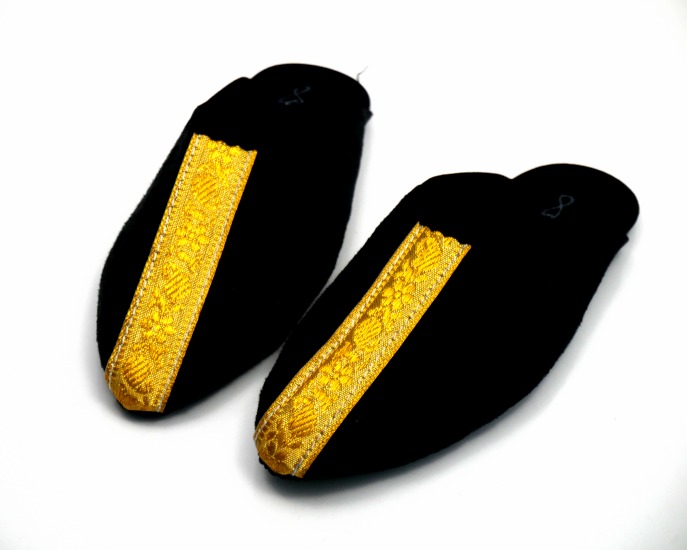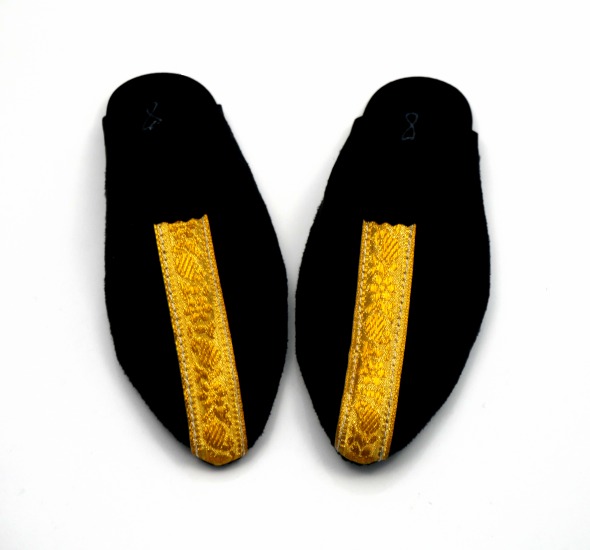 Babouches artisanales marocaine pour enfants - Garçons - en daim noir avec décoration dorée Vetement & Accessoire