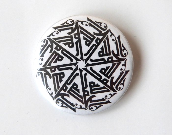 Badge avec calligraphie arabe "Al-hamdoulillah" calligraphiée de façon concentrique et imbriquée.