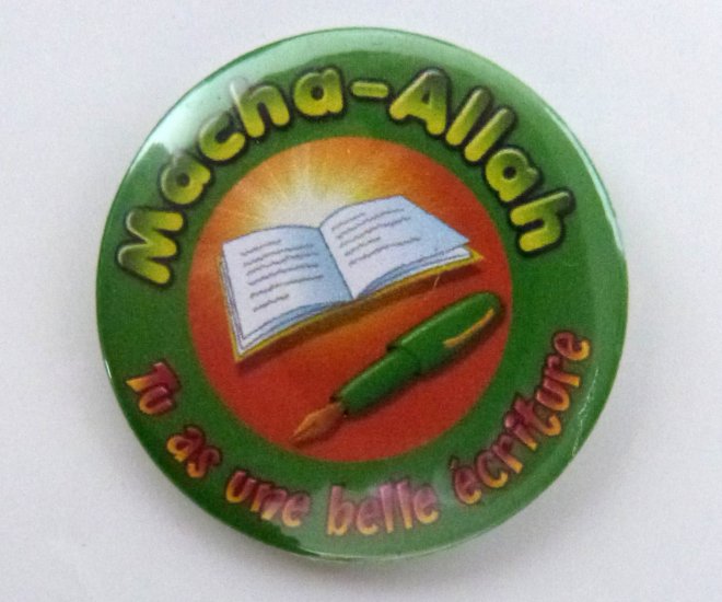 Badge "Macha-Allah - Tu as une belle écriture" (Pins vert) - ماشاء الله خطك جميل - REF. 22311 (1.00 €)