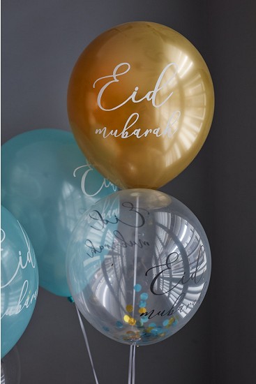 Pas de fête sans ballons, ces magnifiques ballons Eid Mubarak se déclinent en 3 couleurs différentes. Y compris les ballons de confettis !