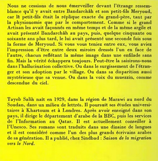 Bandarchâh… un nom magique, qu’on croirait tout droit sorti du Livre des Rois, le classique de la littérature persane. Au lieu de cela, on se retrouve quelques milliers de kilomètres plus au sud, dans la campagne soudanaise. C’est peut-être pour ça que Tayeb Salih est méconnu du grand public : on ne l’attend pas où il est. Noir et arabe, né au Soudan et formé en Angleterre, Tayeb Salih est foncièrement inclassable. Du Nord et du Sud à la fois, peut-être trop africaine pour la littérature arabe à laquelle elle appartient pourtant, son œuvre interpelle et interroge sur la question de la difficile réconciliation des cultures.