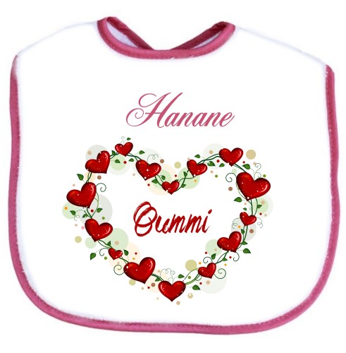 Bavoir personnalisé pour bébé : J'aime Oummî & Abî - Rose avec prénom féminin - REF. 18822 (8.00 €)