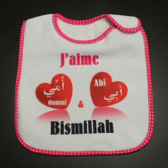Bavoir J'aime Abî et Oummî - Bismillah (Rose) pour filles - REF. 24964 (4.90 €) |