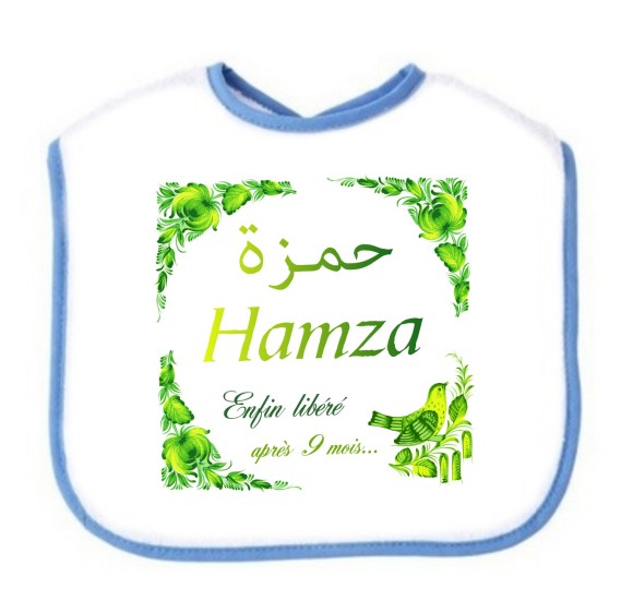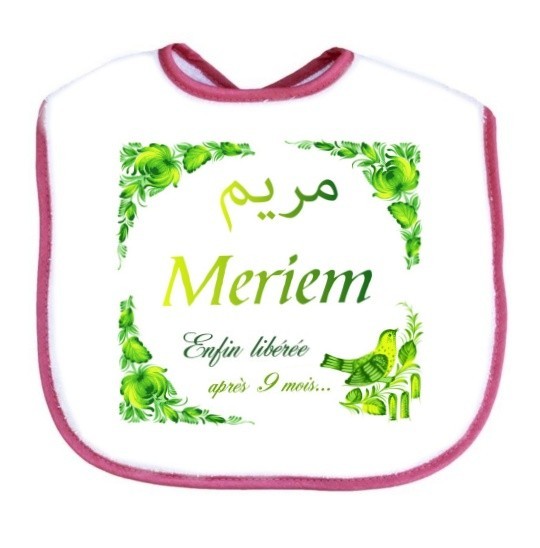 Bavoir pour bébé avec prénom personnalisé en arabe et/ou français. Excellente idée cadeau pour une naissance.