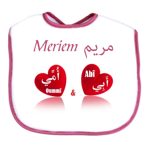 Bavoir pour bébé avec prénom personnalisé en arabe et/ou français. Excellente idée cadeau pour une naissance.